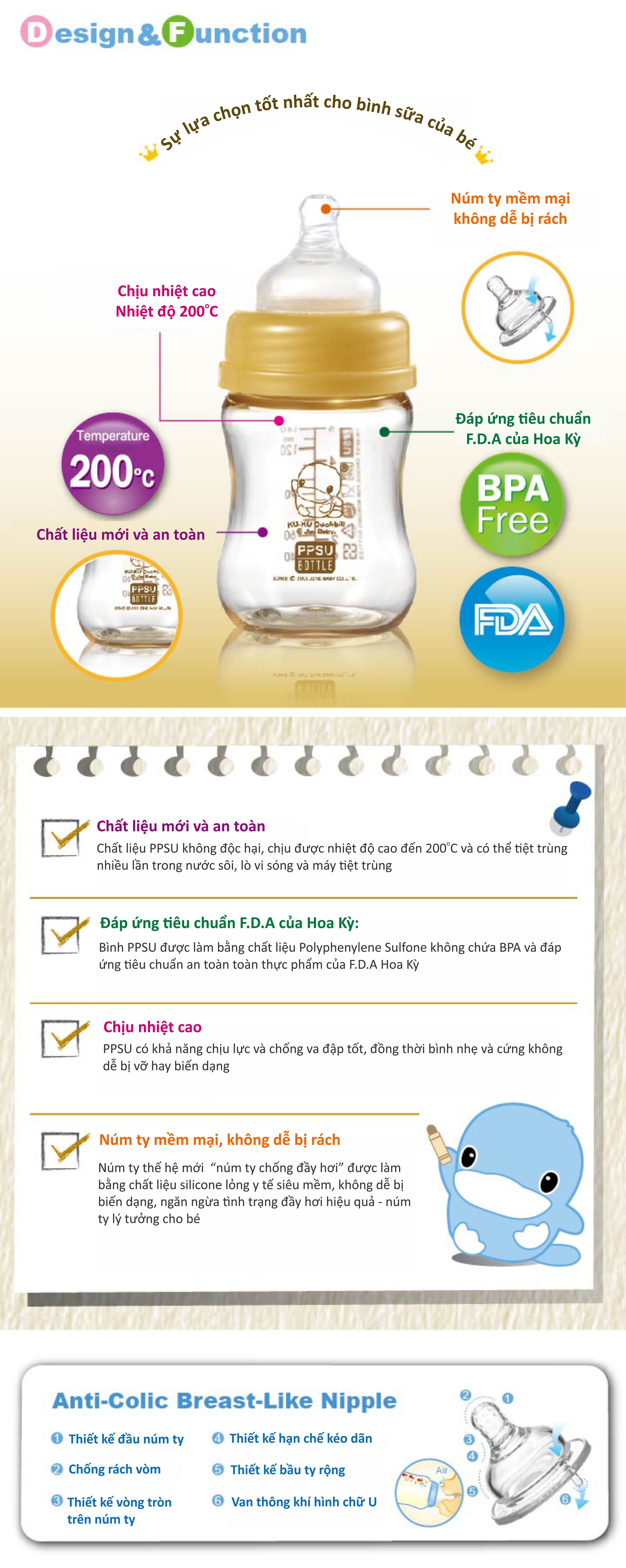 BÌNH SỮA CỔ RỘNG NHỰA PPSU CÓ TAY CẦM KUKU KU5845 - 280ML 399.000 ₫