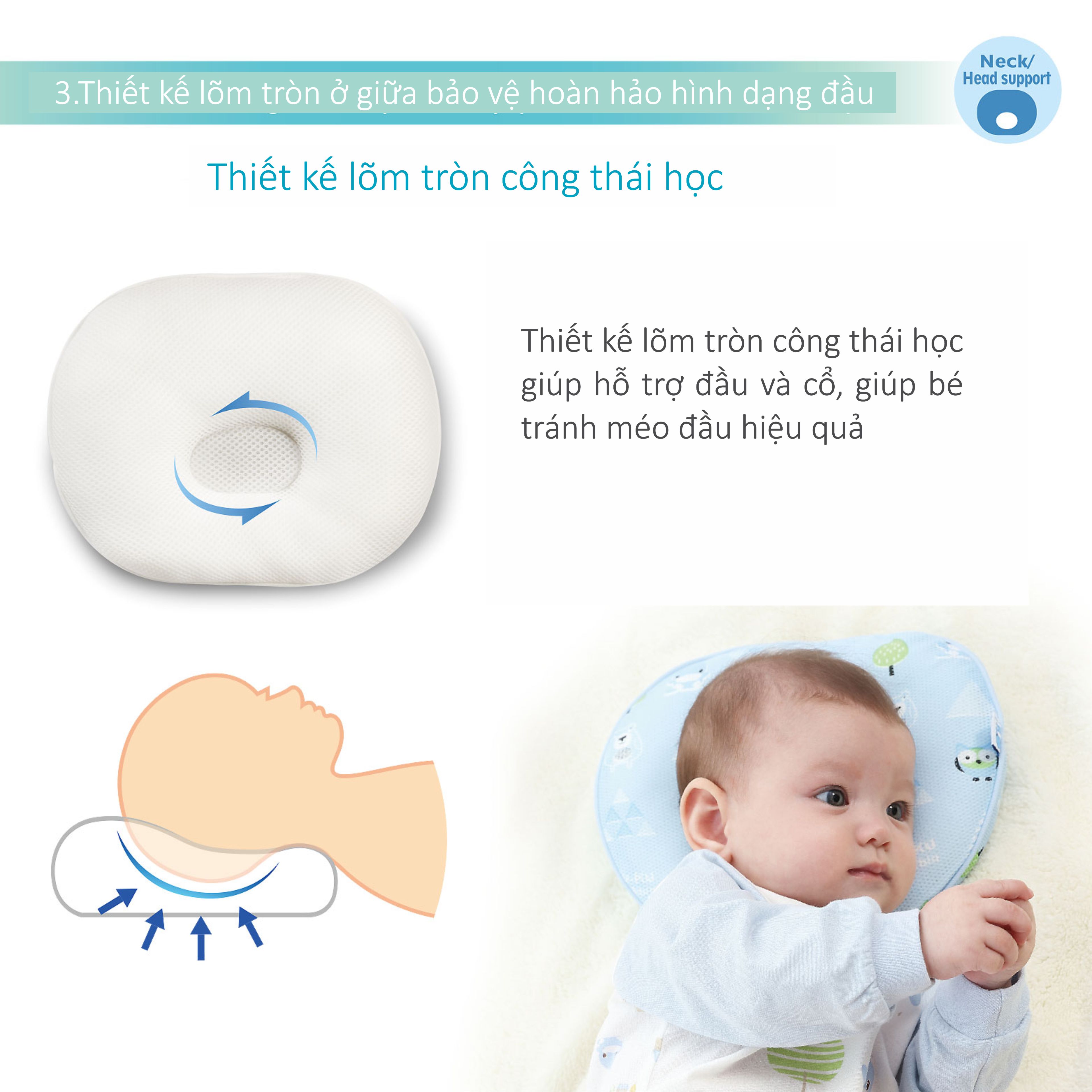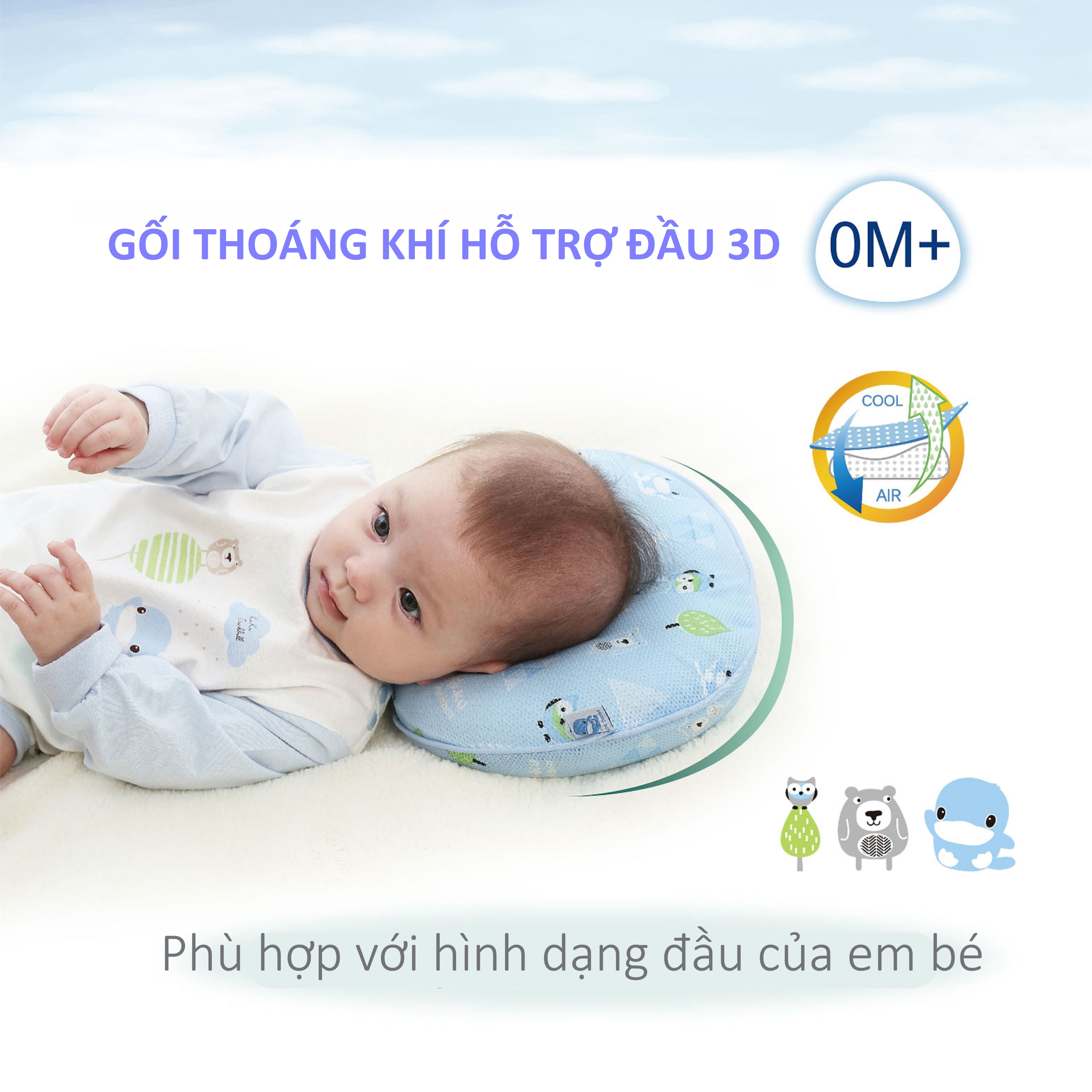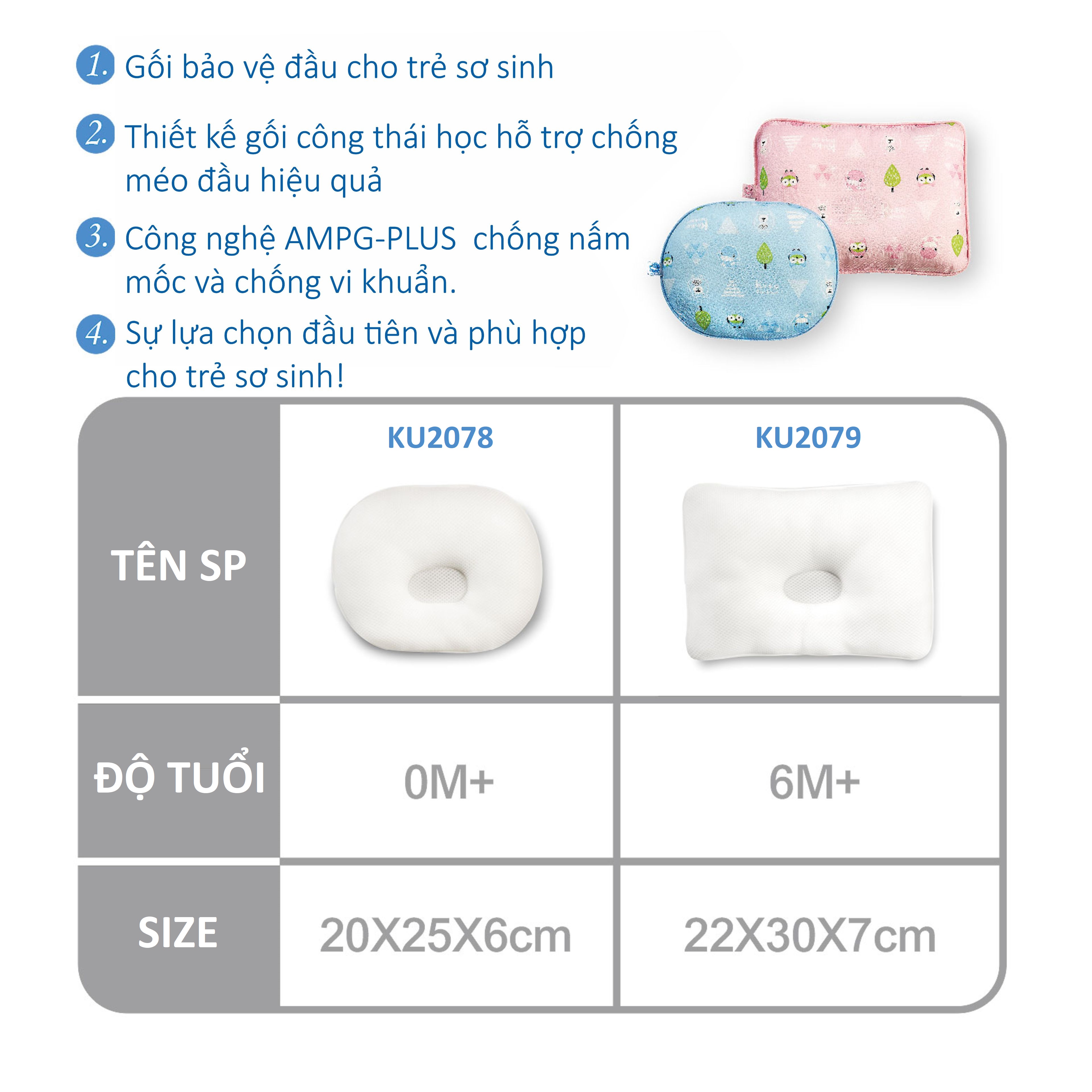 GỐI SƠ SINH HỖ TRỢ ĐẦU 3D TỪ 0M+ KUKU KU2078