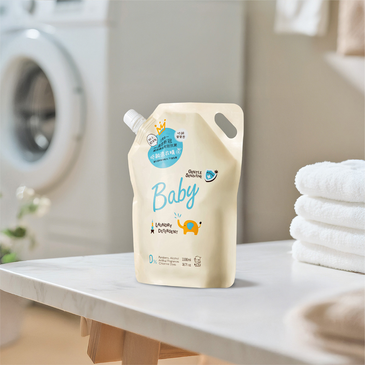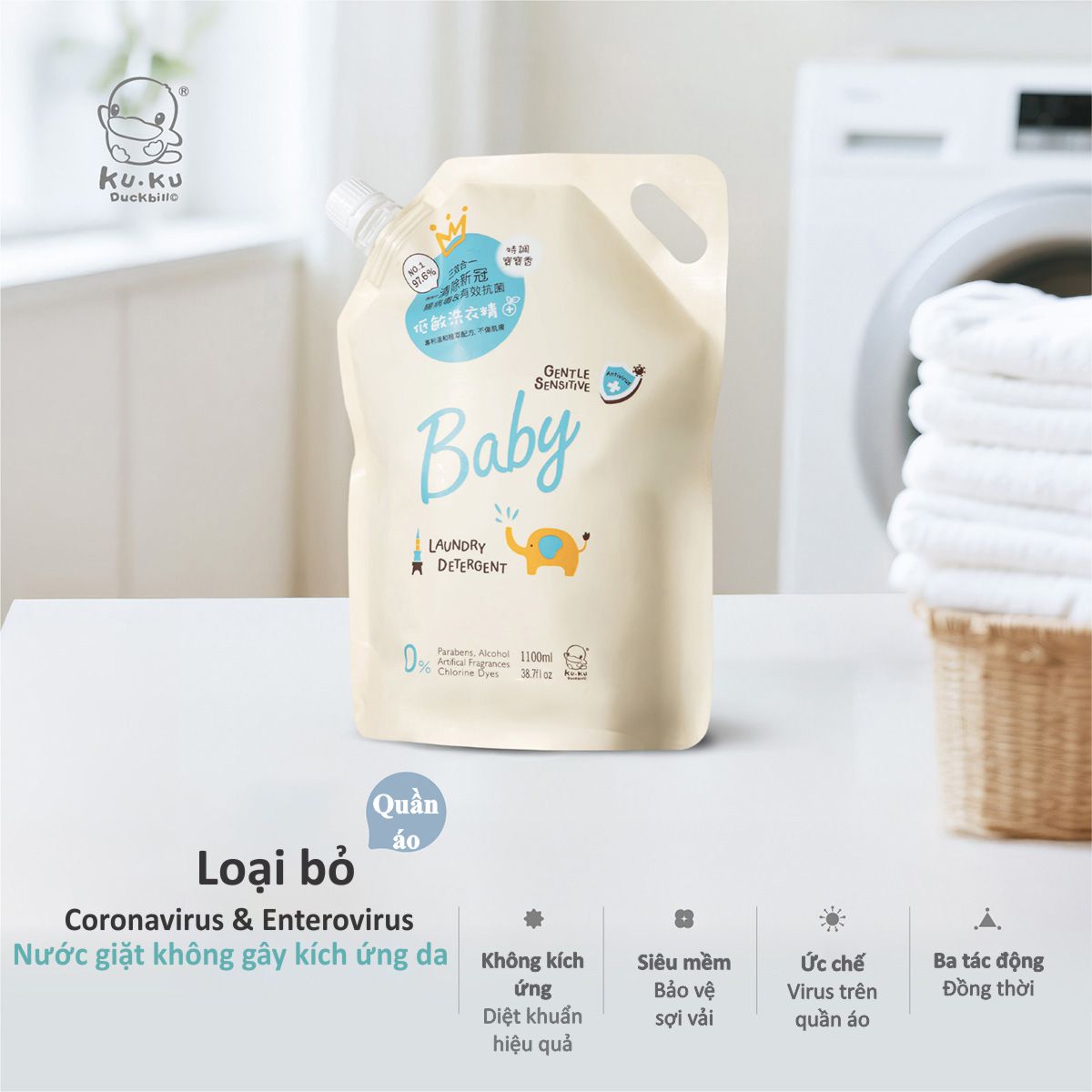 • NƯỚC GIẶT QUẦN ÁO EM BÉ KHÁNG KHUẨN CHO DA NHẠY CẢM KU1165 - GENTLE SENSITIVE - DẠNG TÚI 1100ML - HƯƠNG BABY (CAM BERGAMOT)