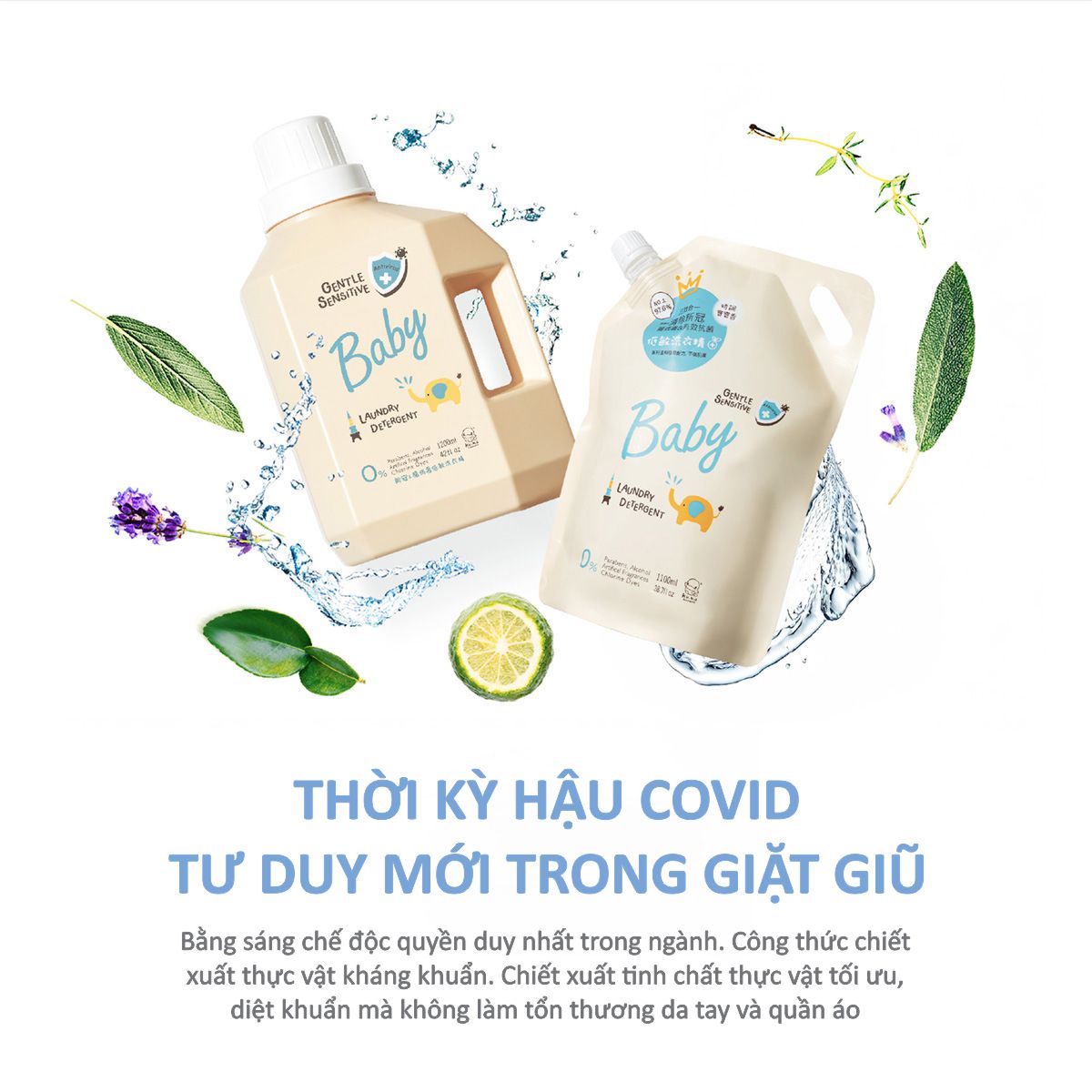 NƯỚC GIẶT QUẦN ÁO EM BÉ KHÁNG KHUẨN CHO DA NHẠY CẢM KU1139 - GENTLE SENSITIVE - 1200ML - HƯƠNG BABY (CAM BERGAMOT)
