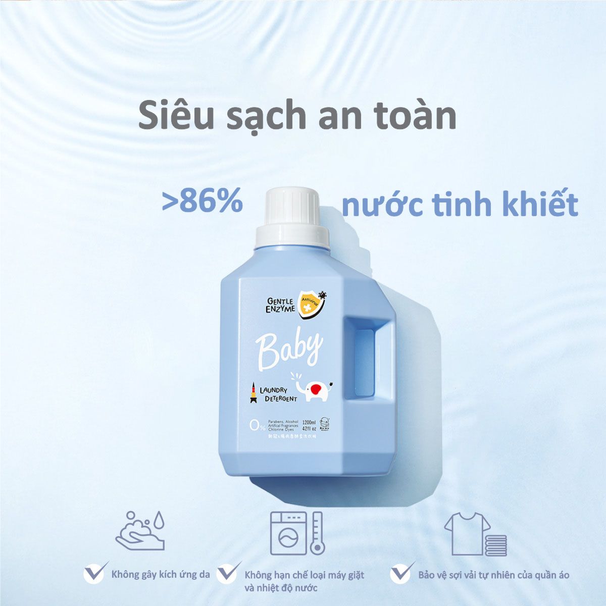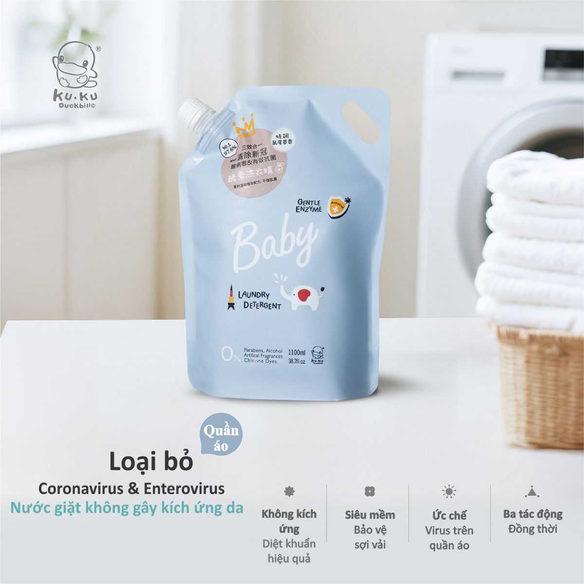 NƯỚC GIẶT QUẦN ÁO EM BÉ KHÁNG KHUẨN CHO DA NHẠY CẢM KU1140 - GENTLE ENZYME - 1200ML - HƯƠNG CÂY XÔ THƠM 179.000 ₫