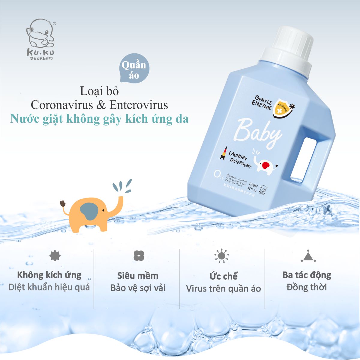 NƯỚC GIẶT QUẦN ÁO EM BÉ KHÁNG KHUẨN CHO DA NHẠY CẢM KU7075 - GENTLE ENZYME - 100ML - HƯƠNG CÂY XÔ THƠM