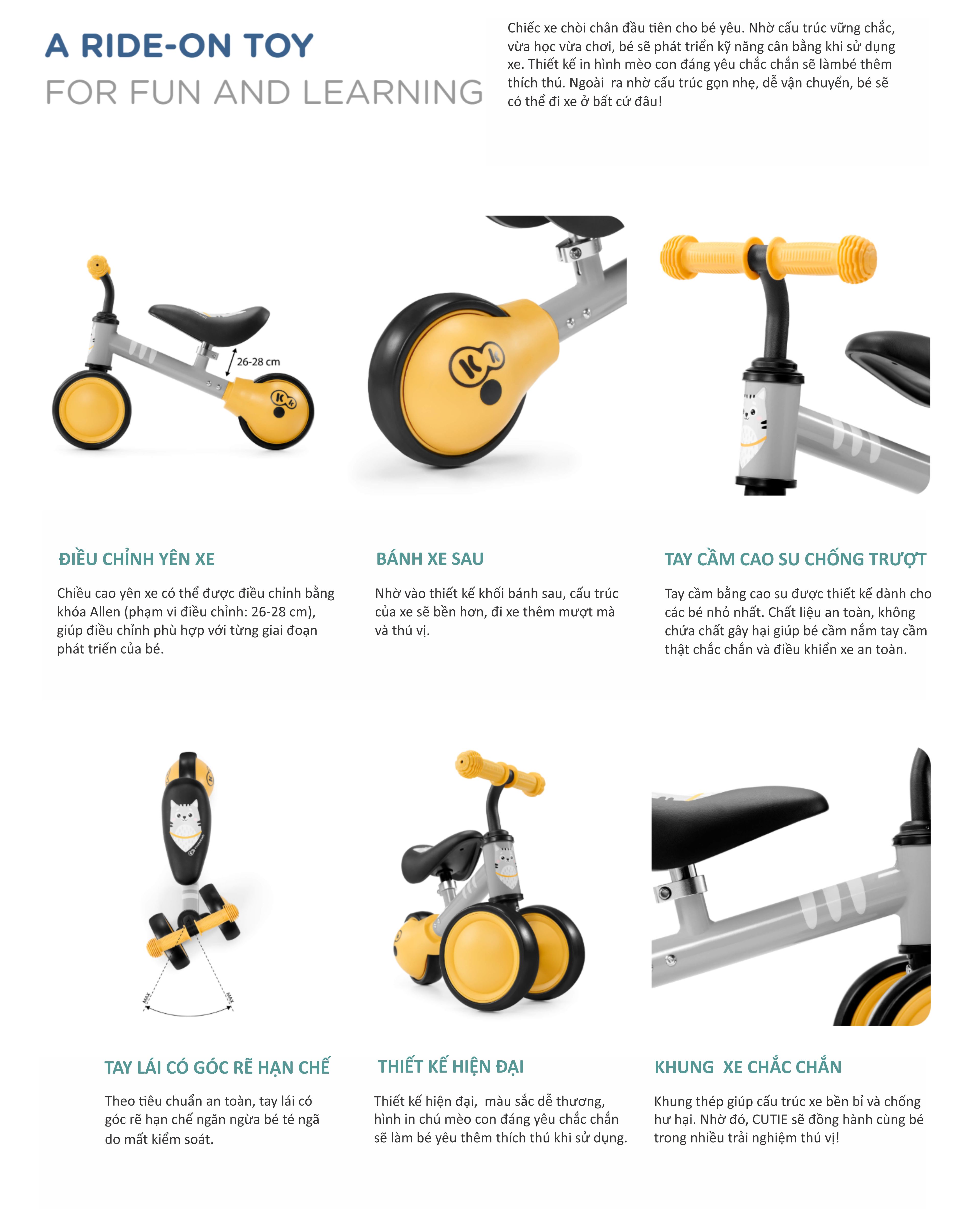 Xe chòi chân 3 bánh Kinderkraft Cutie - Màu cam vàng