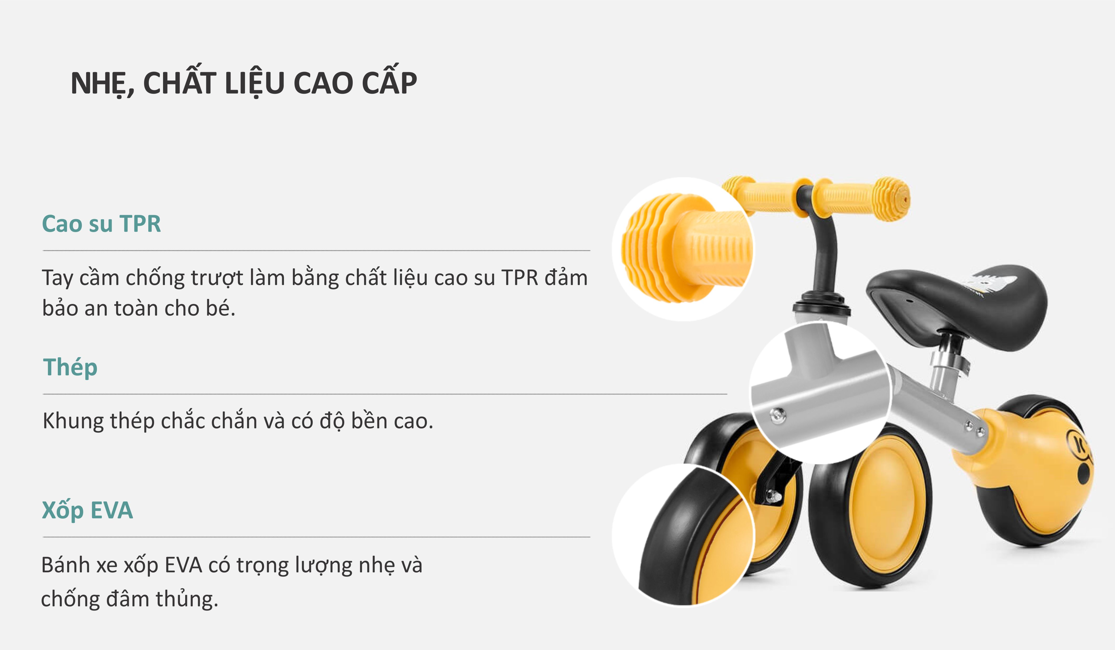 | Chất liệu: | Thép, cao su TPR, xốp EVA |