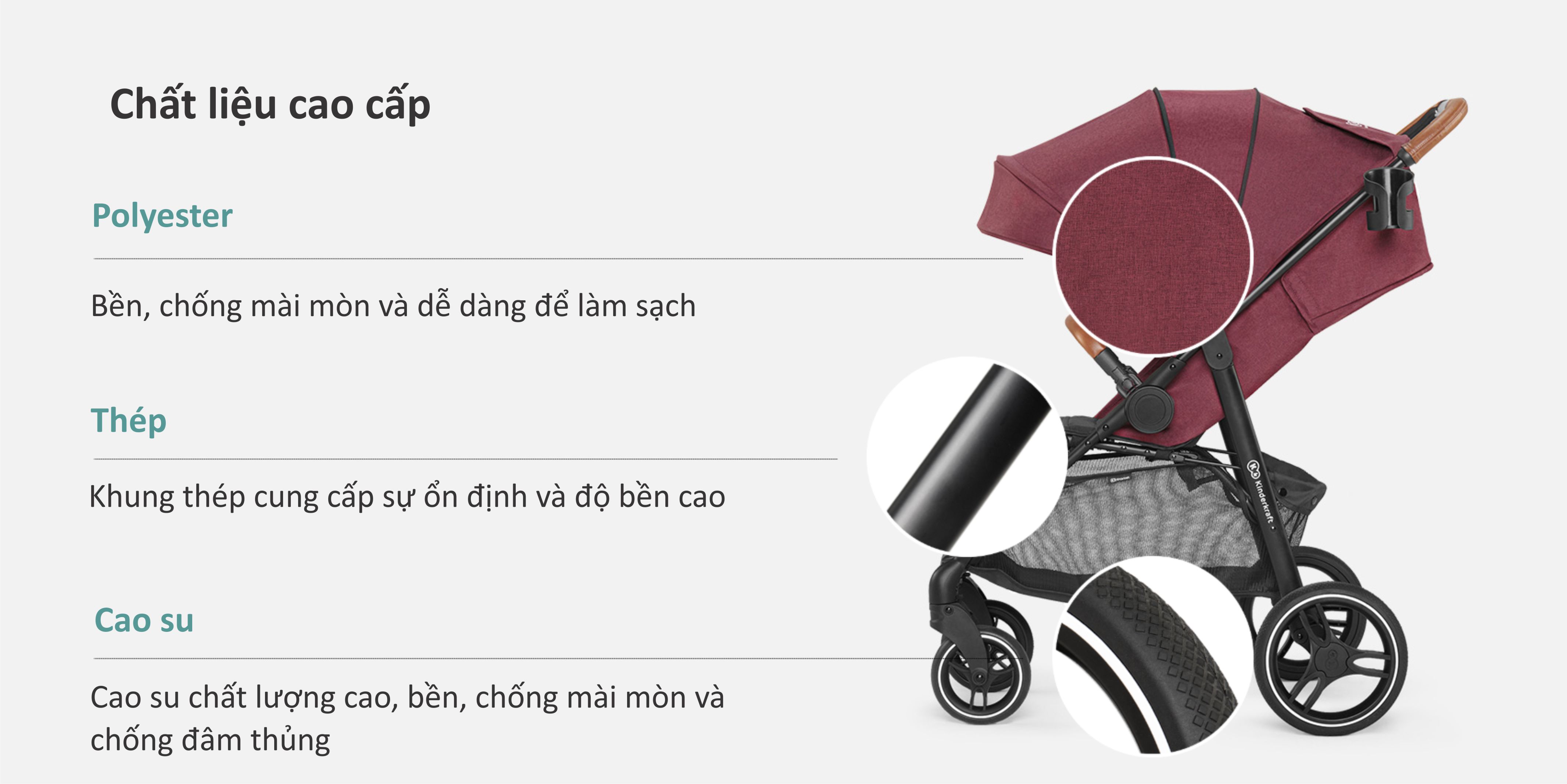 | Chất liệu: | Thép, vải polyester, xốp EVA, cao su |