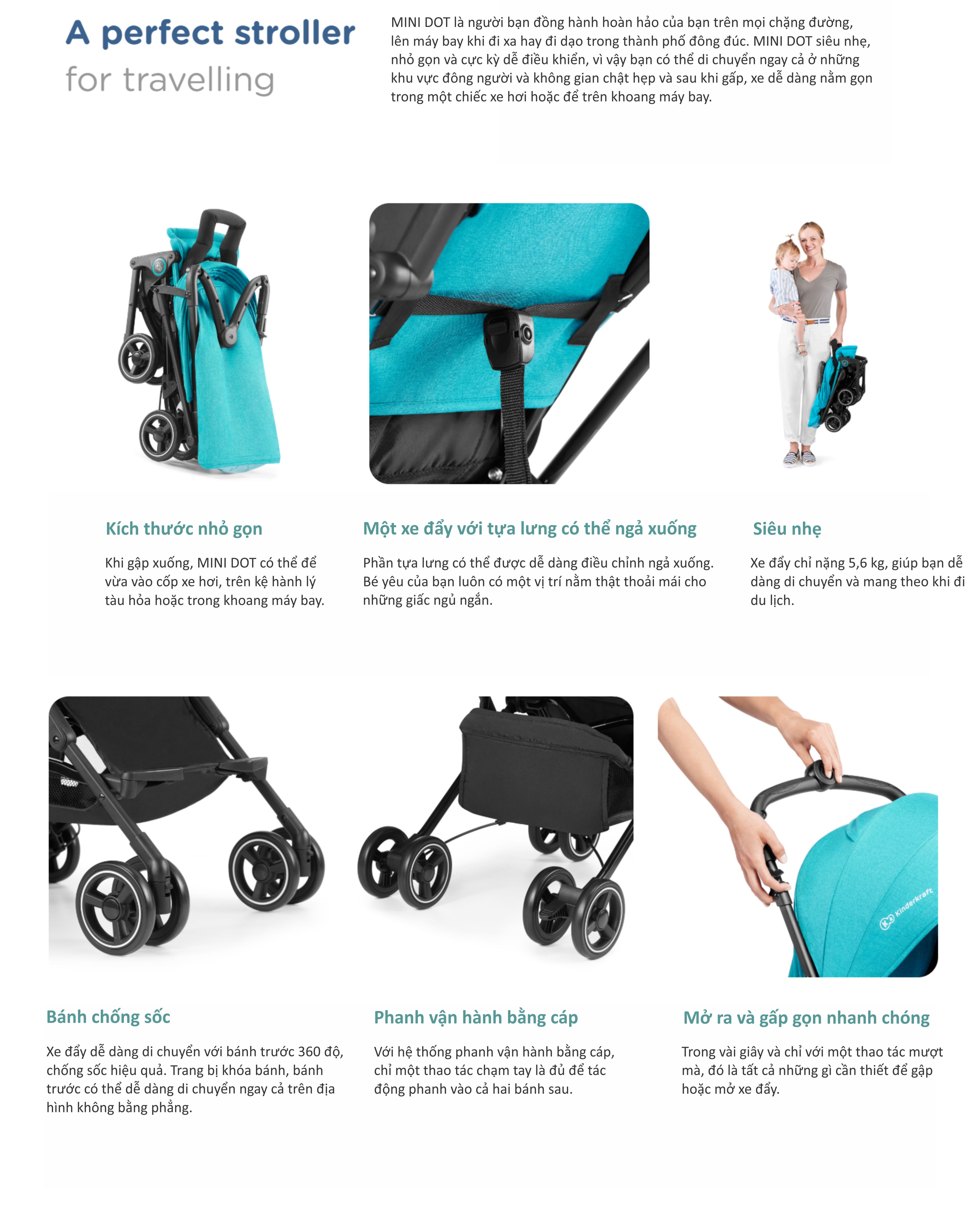 Xe đẩy Kinderkraft Mini Dot - Màu hồng cam