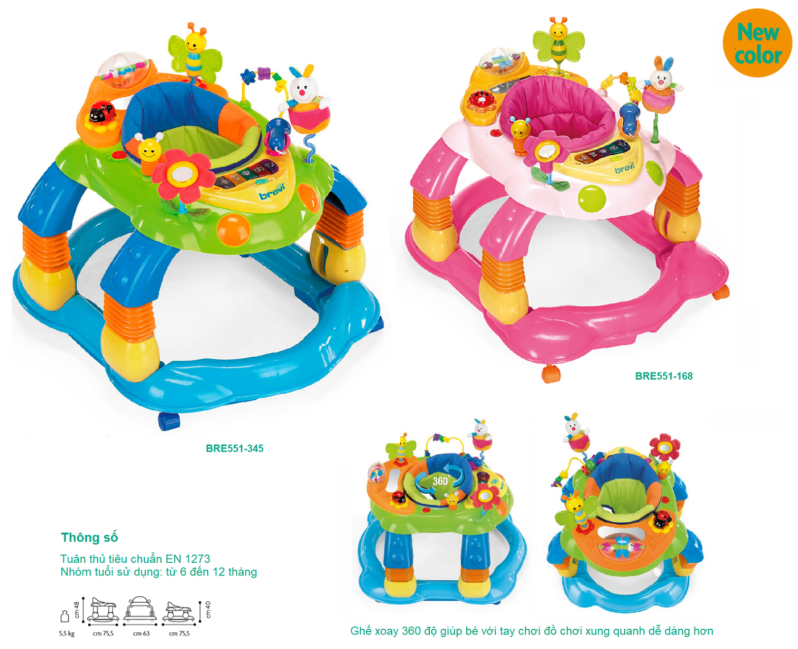 − Bánh xe được thiết kế độc đáo, giúp bé dễ dàng di chuyển, bánh xe có hệ thống chống trượt bảo vệ sự an toàn tối đa cho bé.